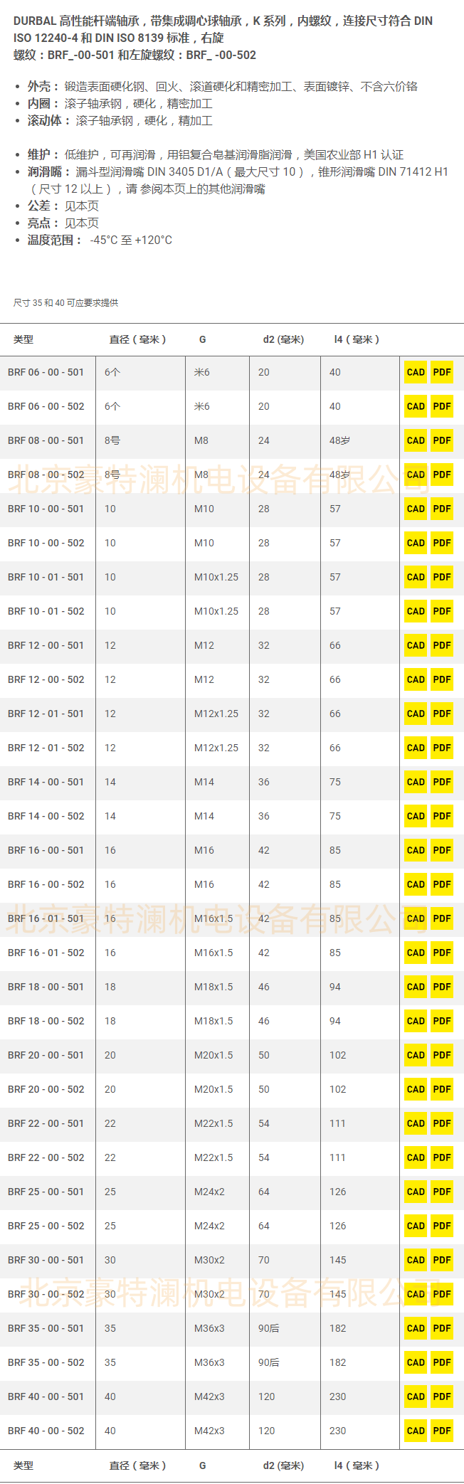 • BRF25-00-501BRF25-00-502德國durbal桿端關節軸承尺寸參數