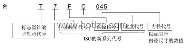 ISO355所規(guī)定的公制系列的圓錐滾子軸承中, 有不依據(jù)以往所使用的3xx尺寸系列的新尺寸。其中一部分記載于尺寸表。外圈寬度、外圈滾道的小端面直徑及接觸角與ISO的規(guī)定一致、內(nèi)圈組件和外圈均具有*際互換性。其型號不同于以往的公制系列,構(gòu)成如下。